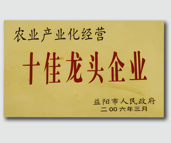 桃花江實(shí)業(yè)榮獲“農(nóng)業(yè)產(chǎn)業(yè)化經(jīng)營-十佳龍頭企業(yè)”榮譽(yù)稱號(hào)。